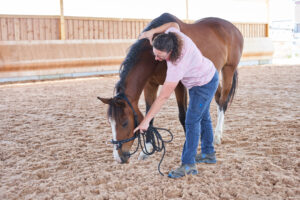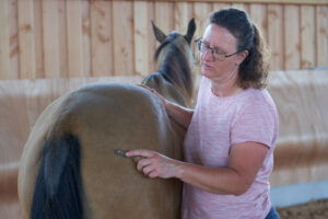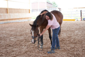 Während einer Therapieeinheit weise ich Dich in die jeweiligen Übungen ein. Somit kannst Du selbständig mit deinem Pferd weiterarbeiten.